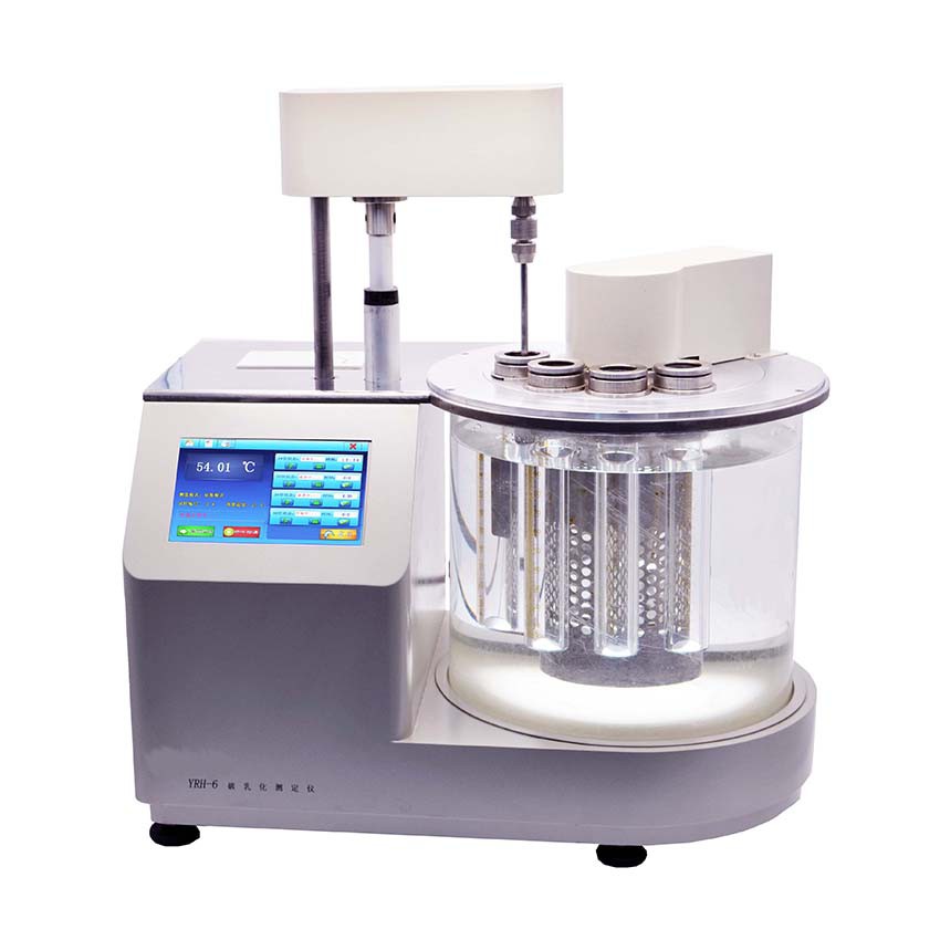 YRH-6型破乳化測定儀是一款國內自動化程度高的破乳化度測定儀,主要用于測定在標準條件下石油合成液與水分離的能力。YRH-6型破乳化測定儀采用松正智能模糊邏輯+PID的復合控溫方法,控溫精度可達0.02℃,控溫速率快,精度高。YRH-6采用智能型無刷電機作為油樣攪拌電機,無碳刷摩擦,具有超低噪音、壽命長的特點。YRH-6將客戶體驗價值作為產品設計的首要的衡量價值貫徹產品設計的始終,在同類產品中擁有的客戶體驗度,是市場同類產品的理想更新換代產品。